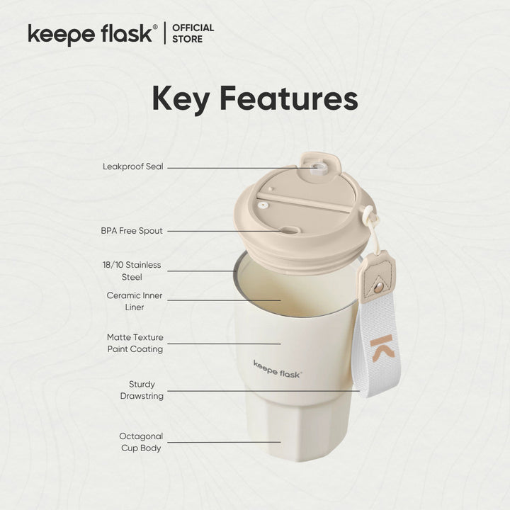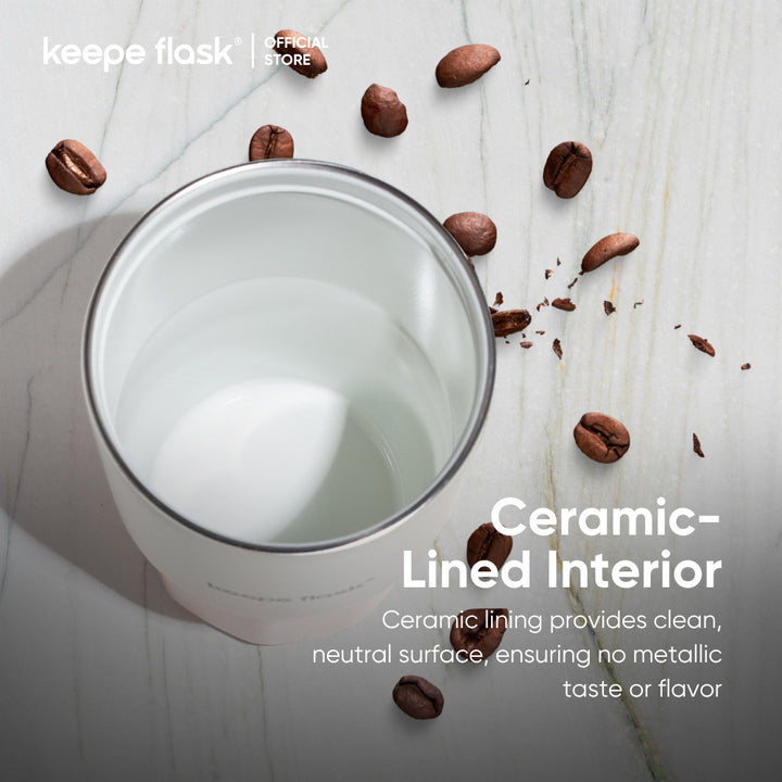 Elevate your daily coffee ritual with the Keepe Flask™ New Coffee Tumbler — where modern design meets practical performance. Made from 18/10 stainless steel, and coated with a premium (expensive) ceramic liner, this 16oz tumbler preserves the pure taste of your favorite beverages without any metallic aftertaste. Whether it's piping hot coffee or a refreshing iced latte, the double-wall insulation keeps drinks at the perfect temperature for long hours.