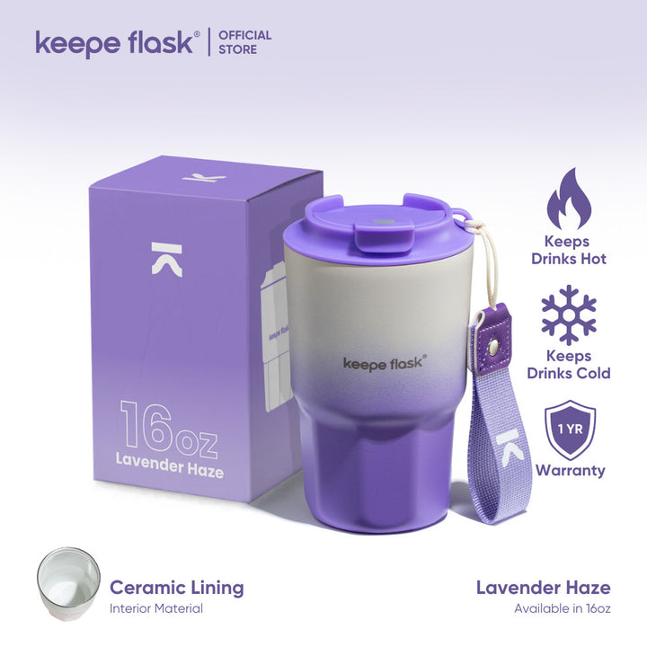 Lavender Haze) Keepe Flask Gradient Purple Stylish Ceramic Lined Coffee Tumbler with Lid & Strap 16oz/450ml